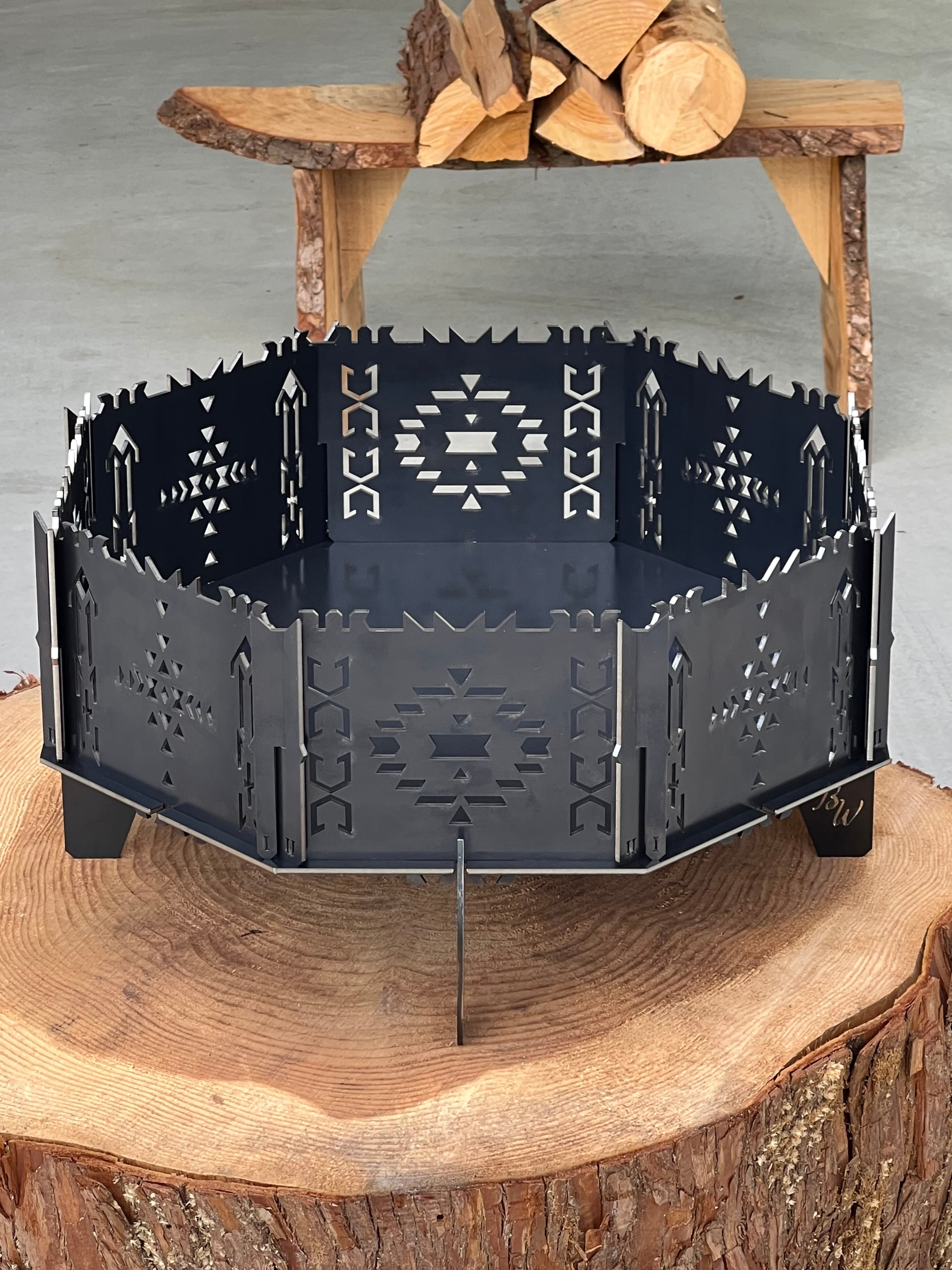 ・40㎝薪がそのまま投入できます。安定感の高い焚火が可能。足元から温まります。