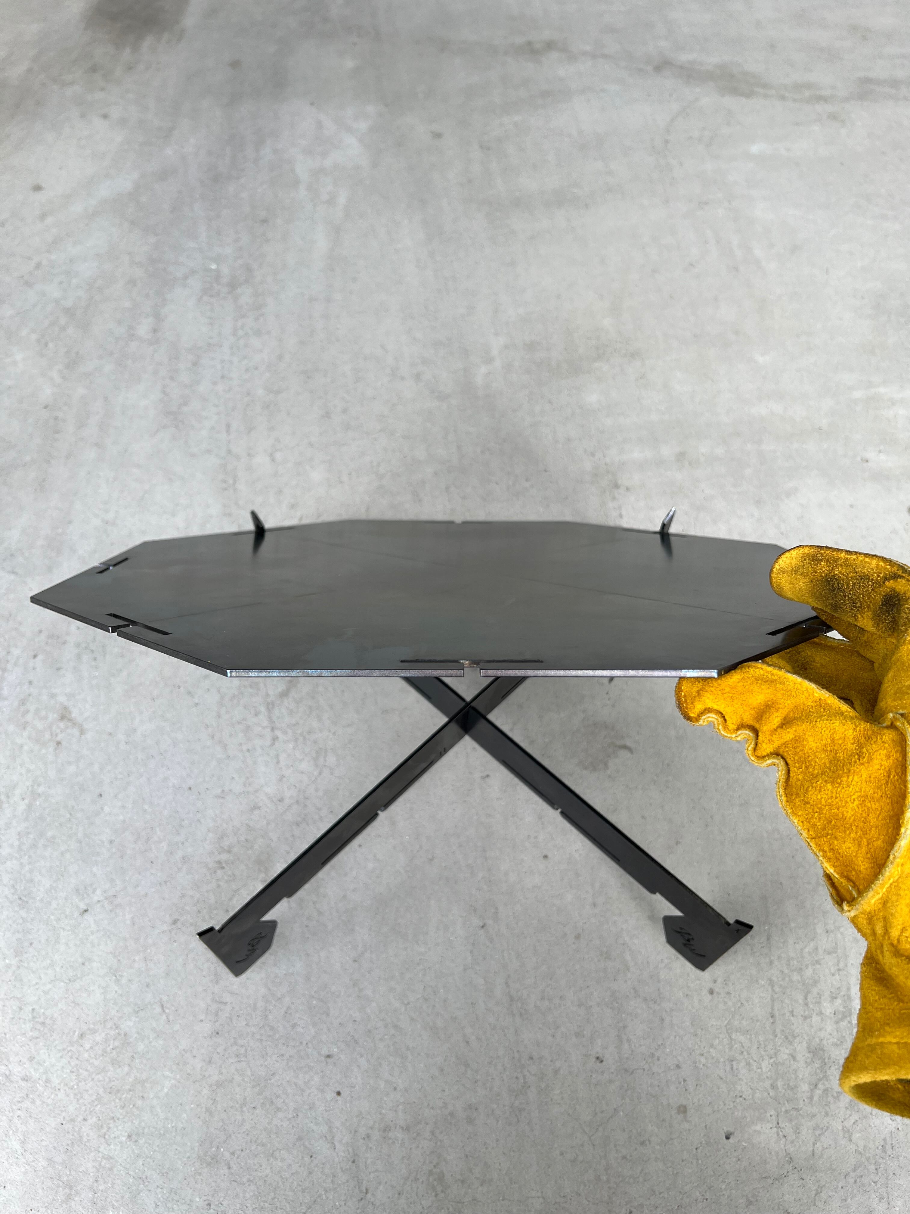 ・3.2㎜厚SS400素材をしてのスリット差込み組立式。コンパクト収納可能