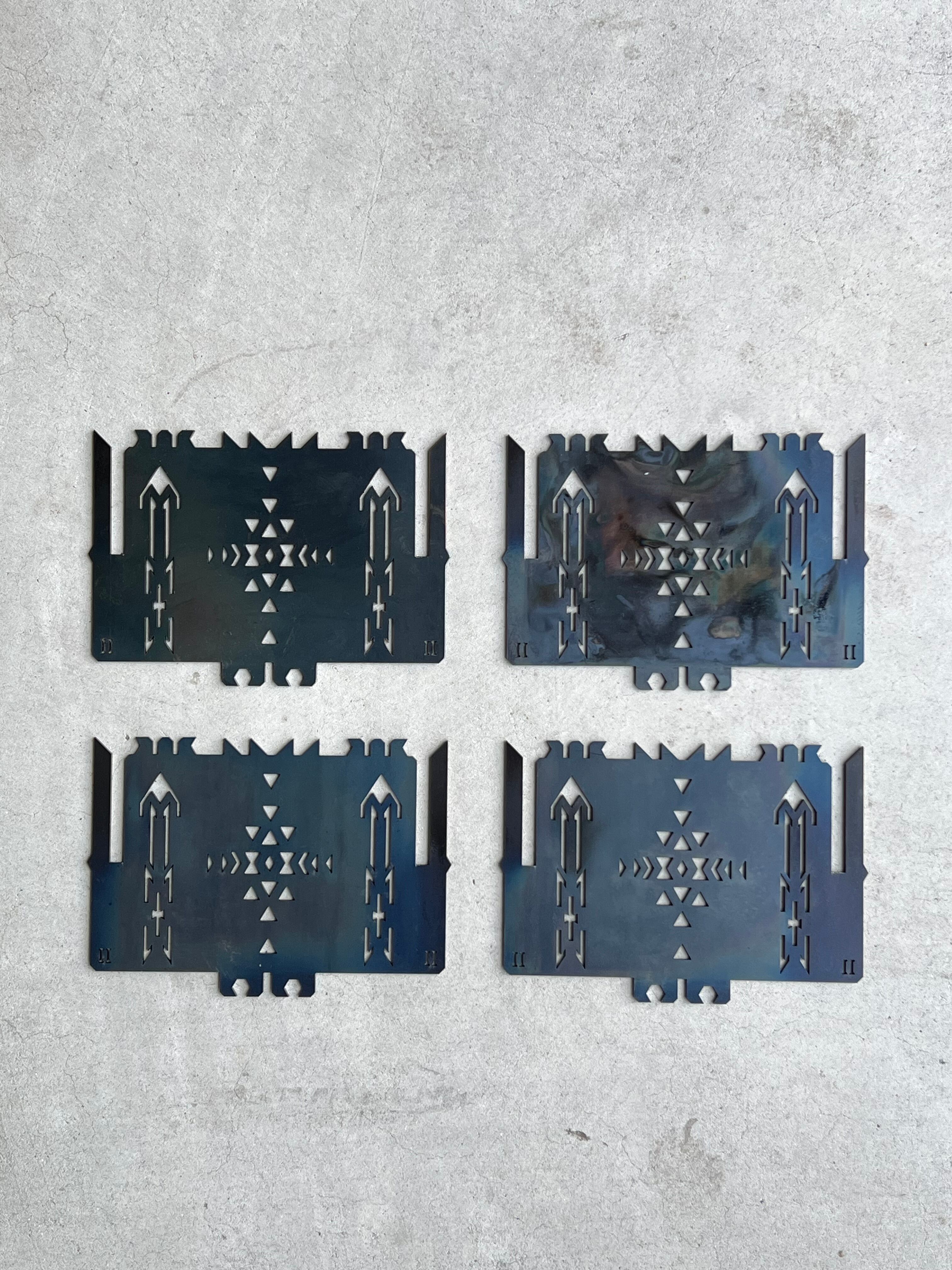 また、焚火での高温時に歪みが発生した場合も含めまして、各部品を反転、回転しながら組立、ご使用頂くことで歪みの進行を減少出来る場合も有ります。