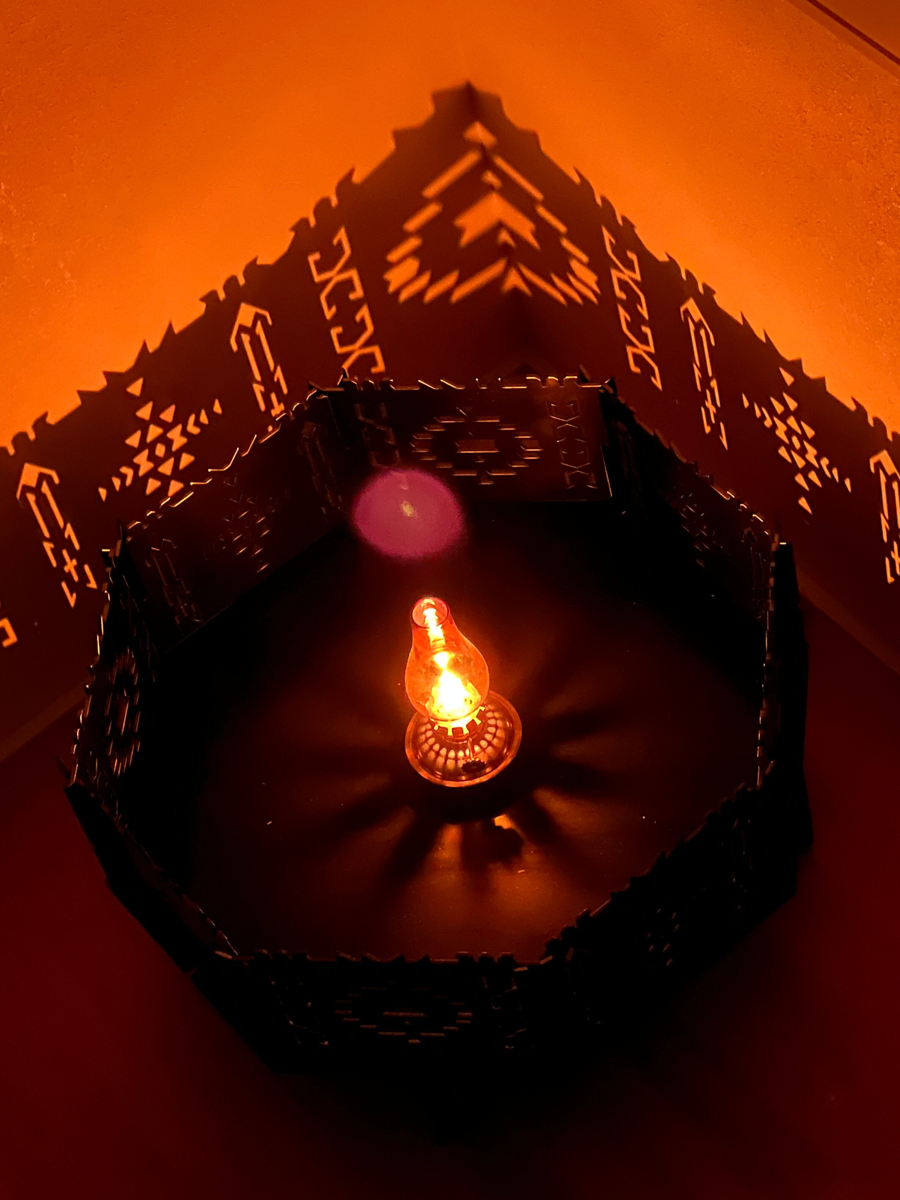 OCTAGONは、焚火、加熱調理、間接照明〔別途LED照明要〕の3WAY仕様