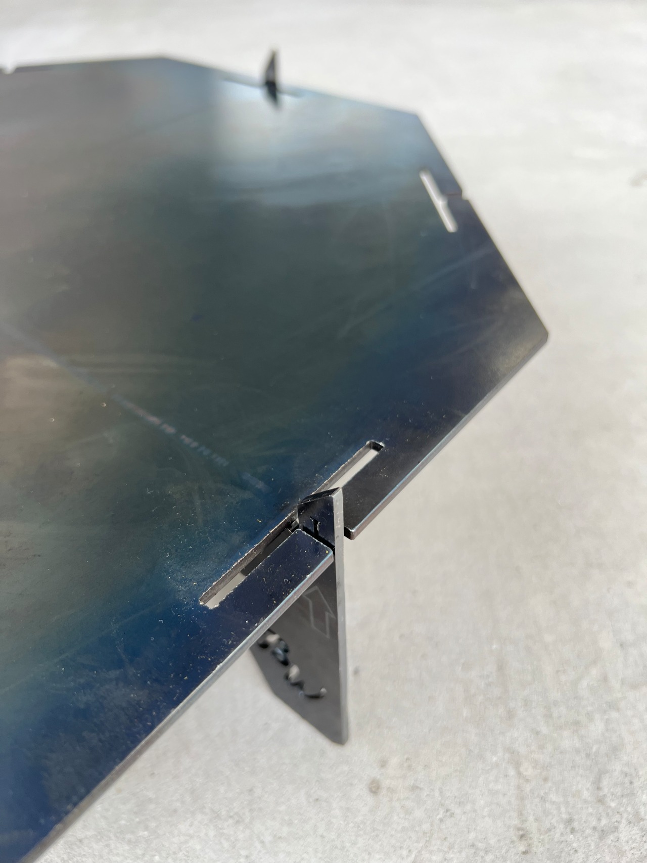 ・3.2㎜厚SS400素材をしてのスリット差込み組立式。コンパクト収納可能